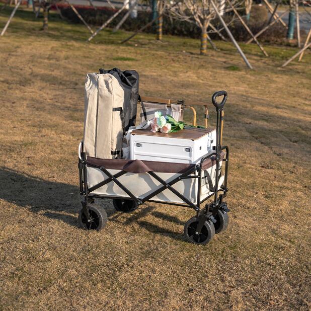 ・キャンプやBBQで大活躍。荷物をまとめて運ぶ折りたたみ式キキャリーワゴン。