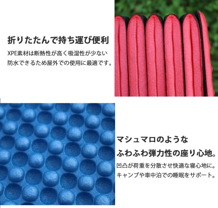 ・XPE素材は断熱性が高く吸湿性が少ない、防水できるため屋外での使用に適しております。