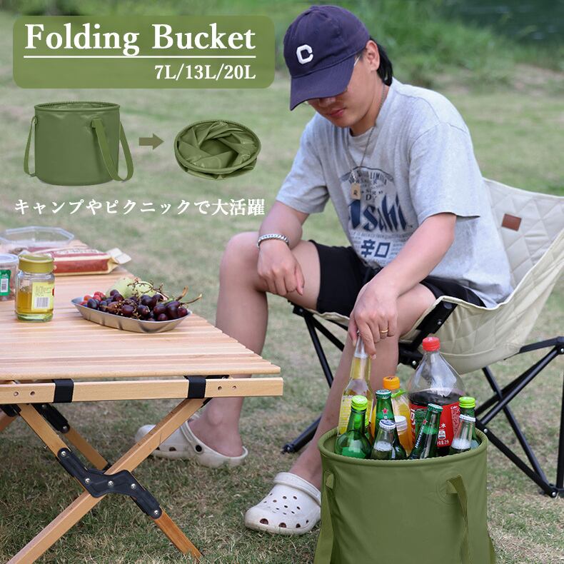 キャンプやピクニックで大活躍 折り畳みバケツ