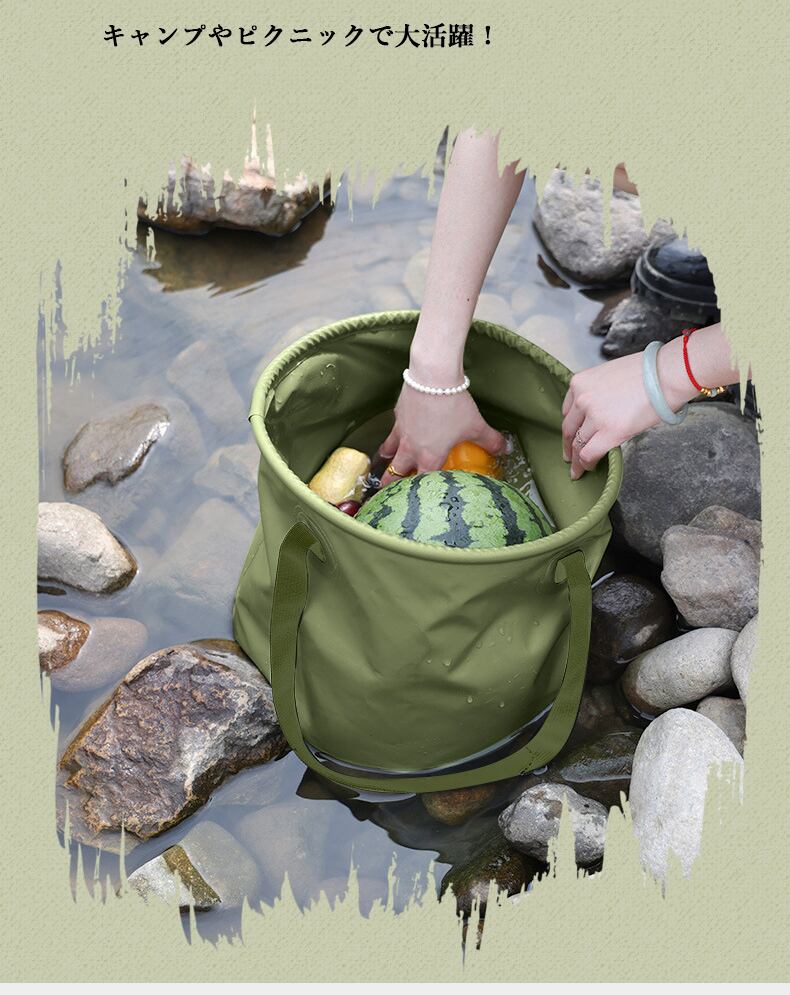 キャンプやピクニックで大活躍 折り畳みバケツ