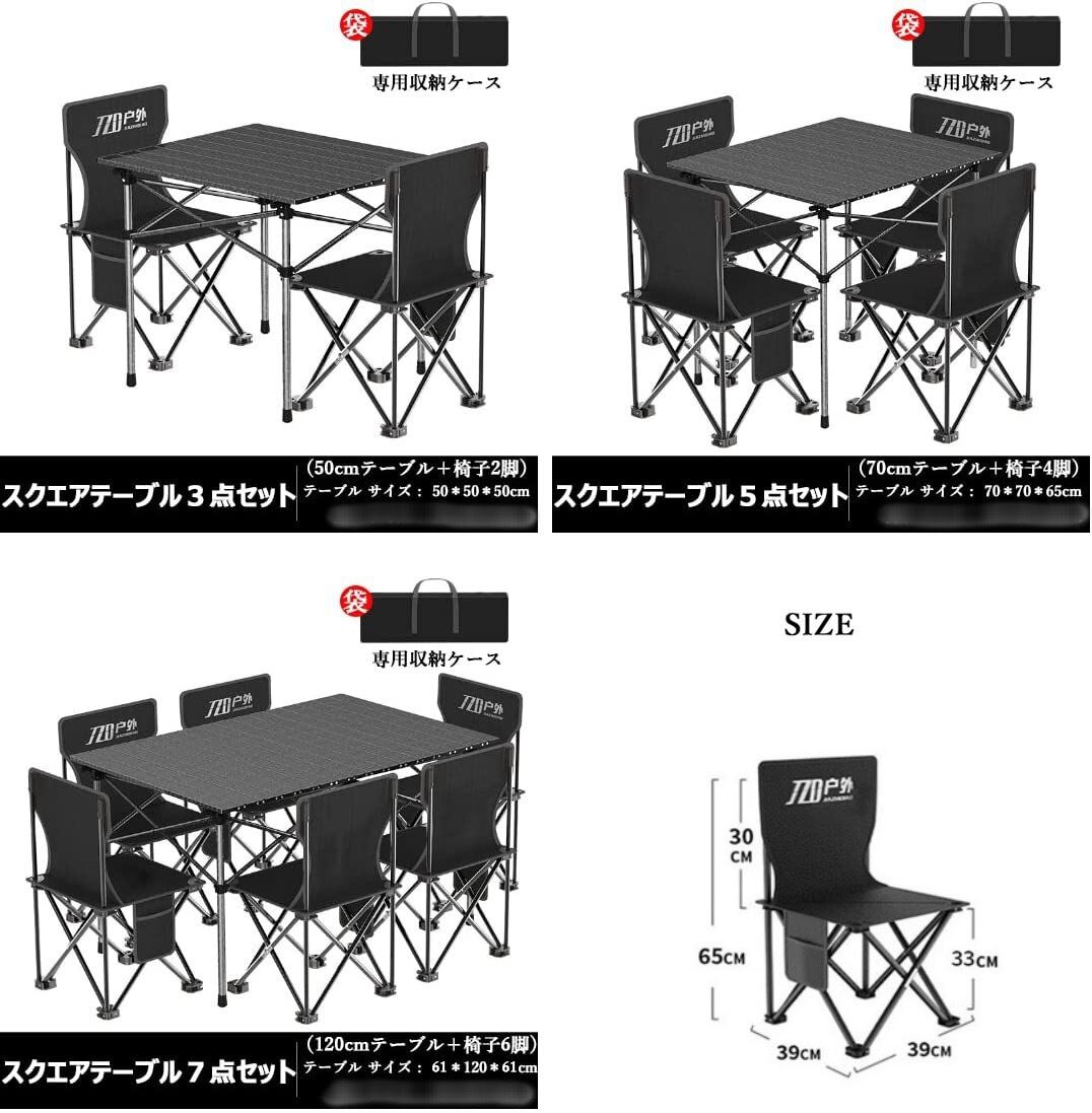 アウトドア 折りたたみテーブルセット ロールテーブル 簡単組立 コンパクト 収納バッグ付 バーベキュ スクエアテーブル7点セット(95CM)