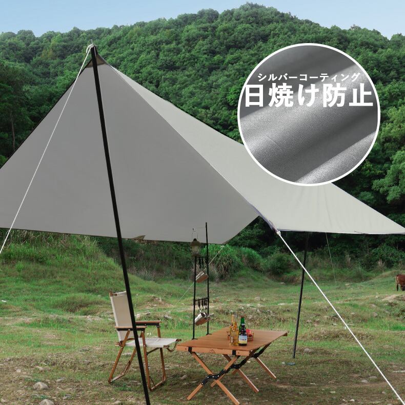 タープ 日除けシェード 防水 ポール付き UPF50+ 超軽量 4-6人用 コンパクト 遮光 遮熱 防風 キャンプ • 300×500CM/210DPU布 • 300×438CM/シルバーコーティング • 300×500CM/シルバーコーティング • 300×400CM/黒コーティング • 300×438CM/黒コーティング • 300×500CM/黒コーティング