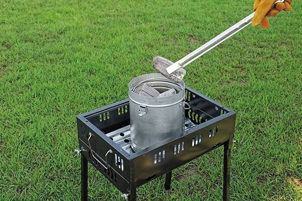 残った木炭を火消しつぼに入れてフタをするだけで酸素を遮断して、自然消火ができます。