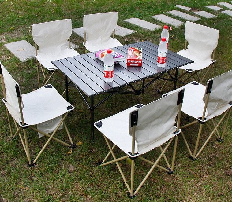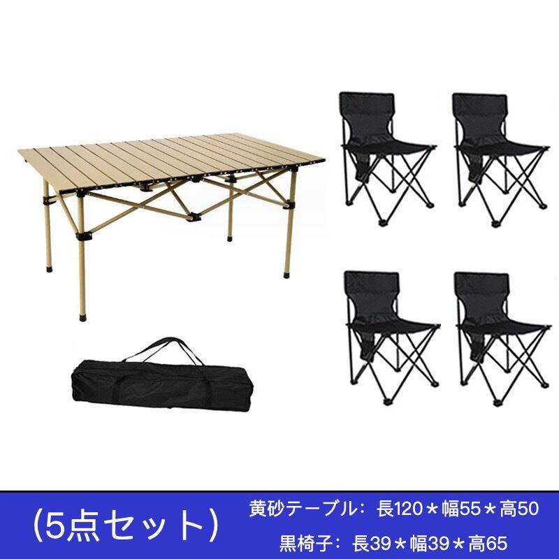 アウトドア 折りたたみテーブル ロールテーブル 簡単組立 コンパクト 収納バッグ付 バーベキュ シリーズ3 95CM黄砂テーブル/黒椅子/7点セット 120CM黄砂テーブル/黒椅子/5点セット