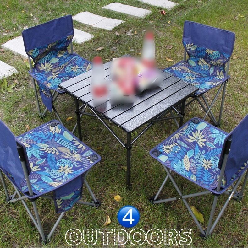 アウトドア 折りたたみテーブル ロールテーブル 簡単組立 コンパクト 収納バッグ付 バーベキュ シリーズ4 50CM黄砂テーブル/青椅子/3点セット