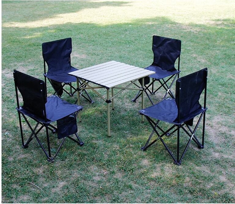 アウトドア 折りたたみテーブル ロールテーブル 簡単組立 コンパクト 収納バッグ付 バーベキュ シリーズ5 50CM黒テーブル/白椅子/5点セット