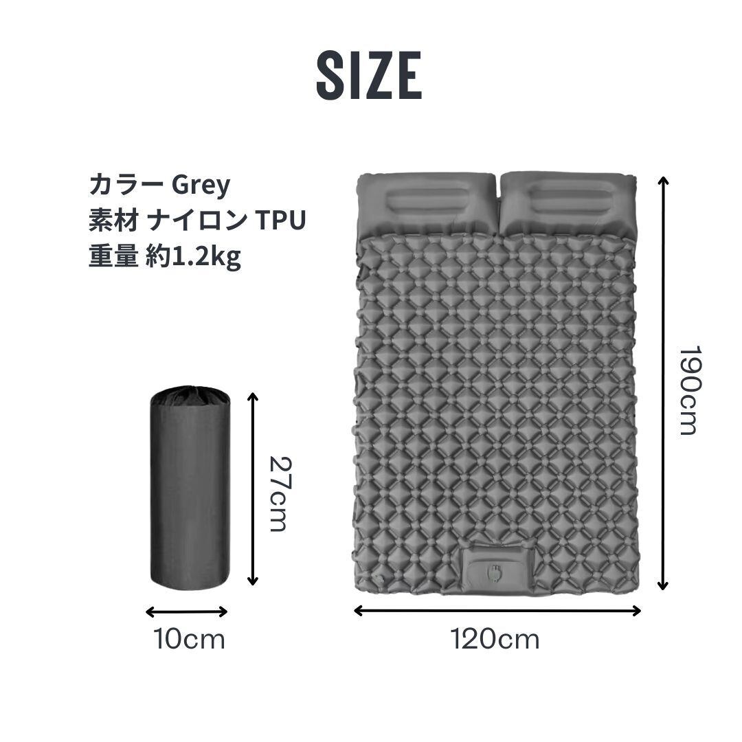 エアマット グレー ダブル 枕付き 防災 キャンプマット エアーマット