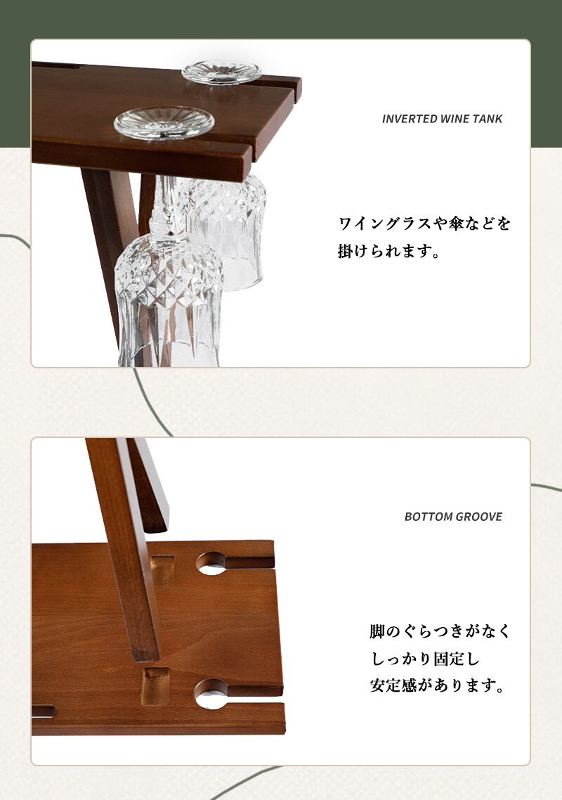 ・ナチュラルなウッドカラーとコンパクトのサイズ感で、キャンプがさらに楽しくなるアイテムです。