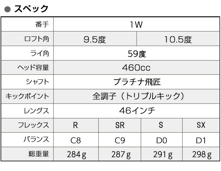 【適合ドライバー】マキシマックスブラックシリーズII 三菱ケミカル プラチナ飛匠シャフト 仕様