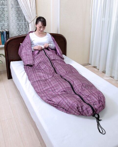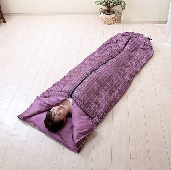 ●寝袋使用時はファスナーで簡単に閉じることができます。