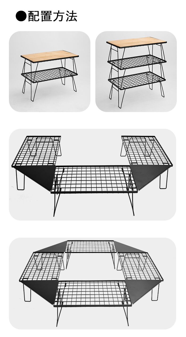 フィールドラック (メッシュテーブル4段+コーナー連結板4枚/収納袋あり)