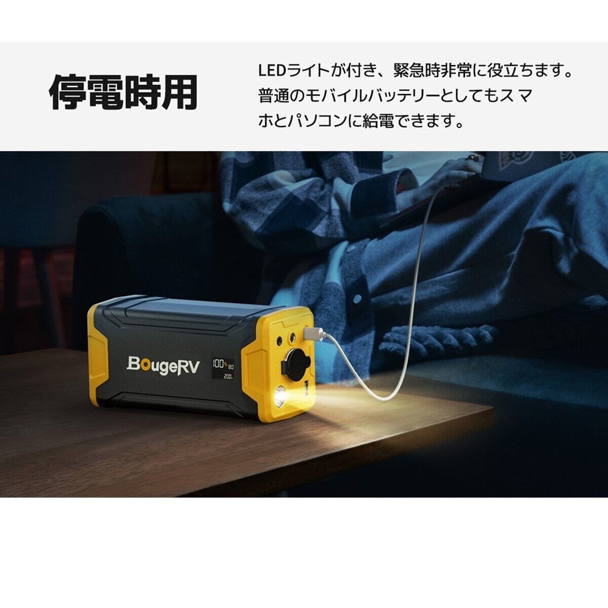 外寸は18cm×8.5cm×7cmと、重さもわずか1.45kgで、これまでよりも携帯性と便利性が格段に向上しています。アウトドアのレジャーや充電の手間を減らし、どこへでも気軽に持ち運び可能です。キャンプや車中泊、バーベキューなどのアウトドアシーンで大いに役立ちます。LEDライトが付いており、停電や災害時にも予備電源として重宝します。