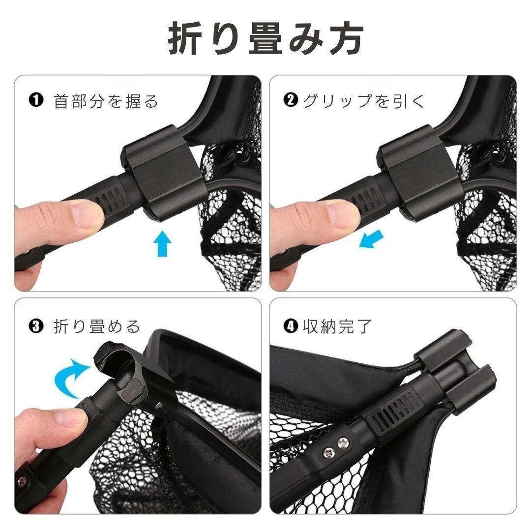 全長99.5cmの長さでかつ携帯性抜群の折りたたみ式タモ網です。