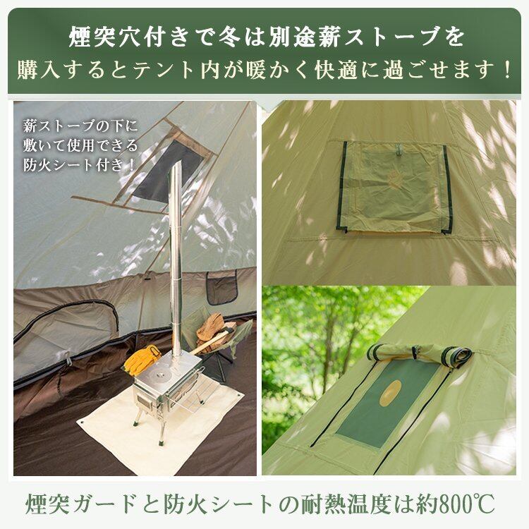 コットンテント 煙突穴・防火シート付き キャンプ テント ワンポール 280cm 4人用