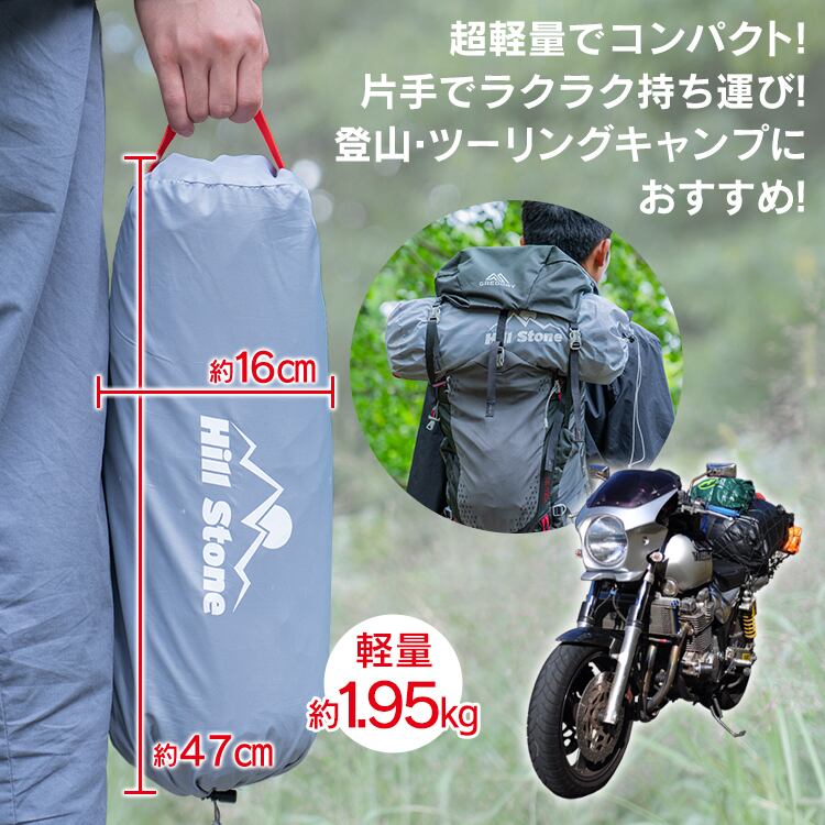 荷物を極限まで減らしたいバイク旅や、移動の多い登山・トレッキングキャンプにも負担をかけません。