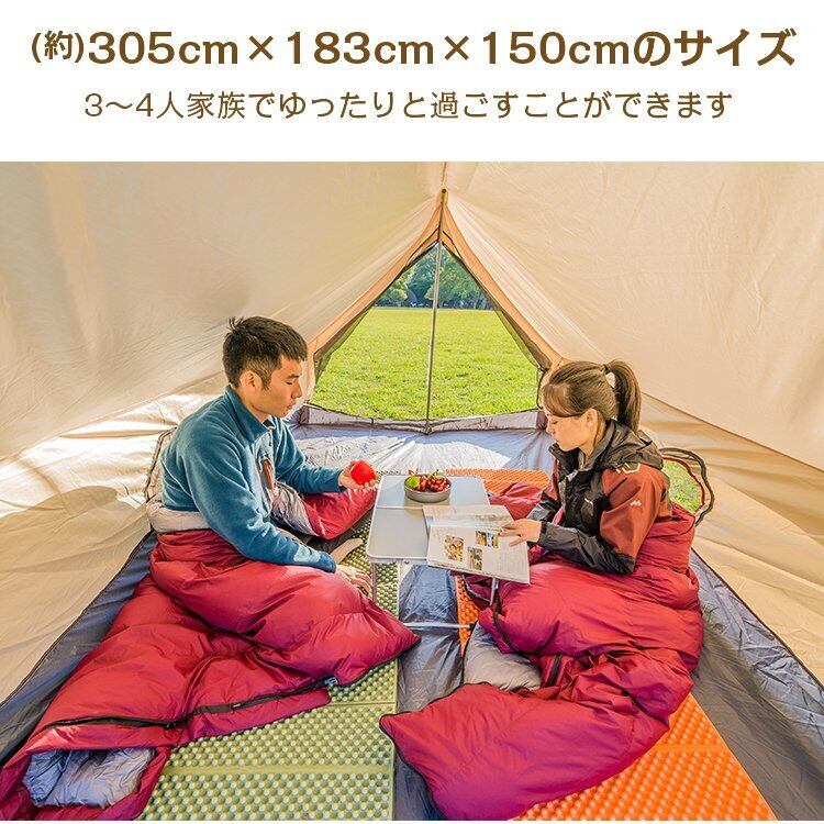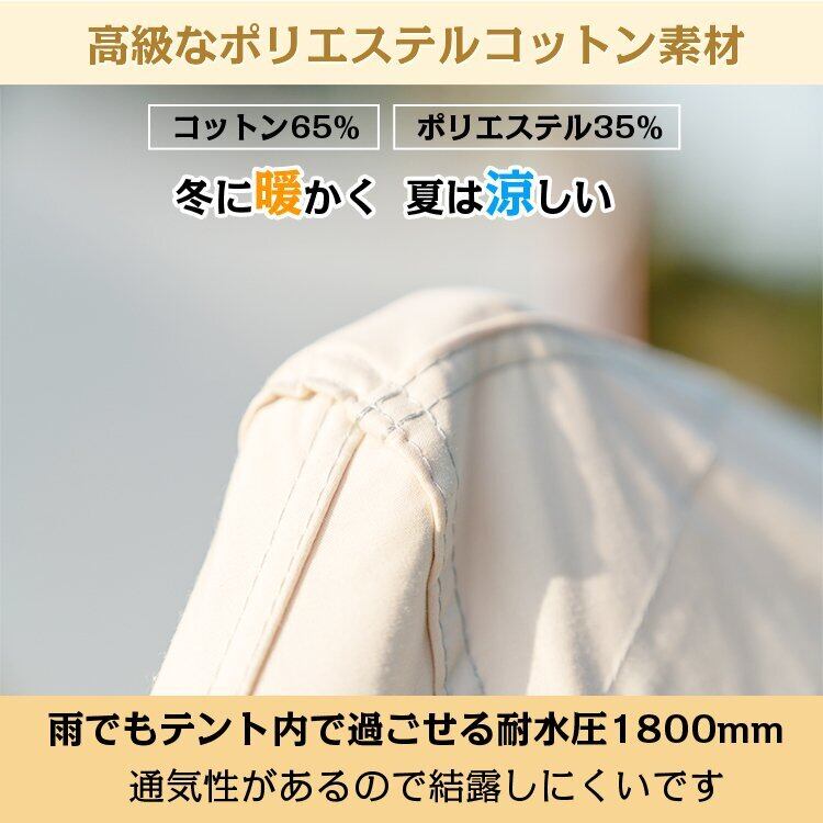 「コンパクト」と「快適性」を両立!冬暖かく夏涼しいポリコットン素材を採用。ツーリングや3~4人家族でのキャンプに最適な多機能テント!