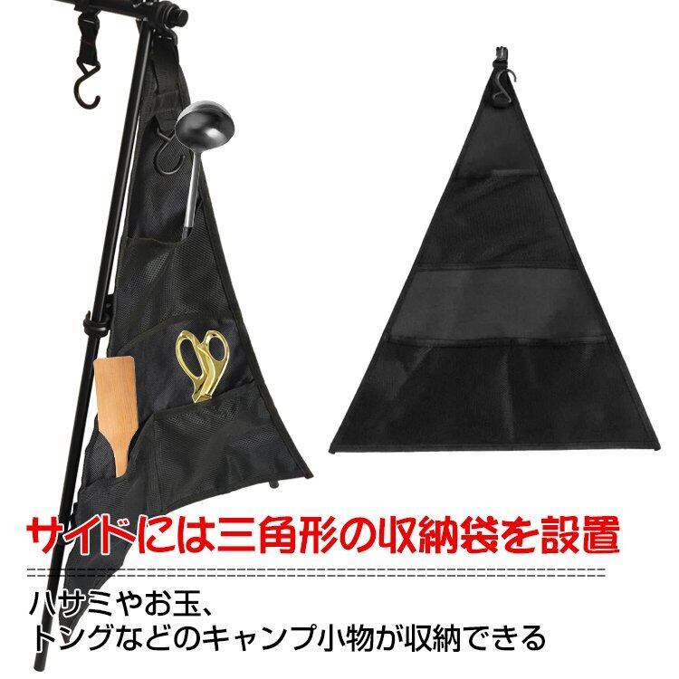 • 小物収納袋付き: サイドには、トングやライターなど細々したものを分けて収納できる三角形の小物収納袋付き。散らばりがちなキャンプ小物もこれで整理できます。