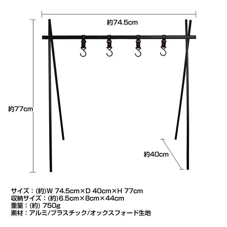 • 特徴: 軽量750g / アルミフレーム / 可動式フック / 小物収納袋付き