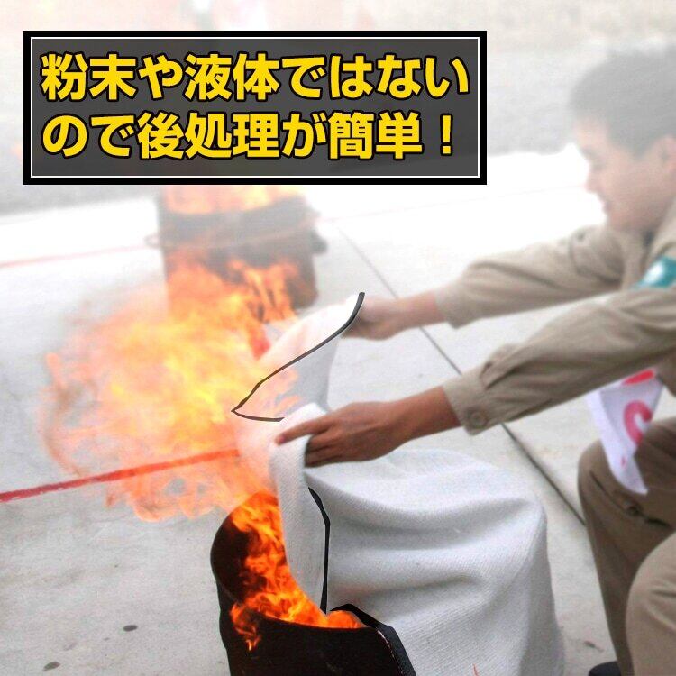 • 水が使えない火災に: 調理油への引火や灯油火災など、水をかけると危険な火災の際、上から被せることで空気を遮断し、安全に消火を助けます。